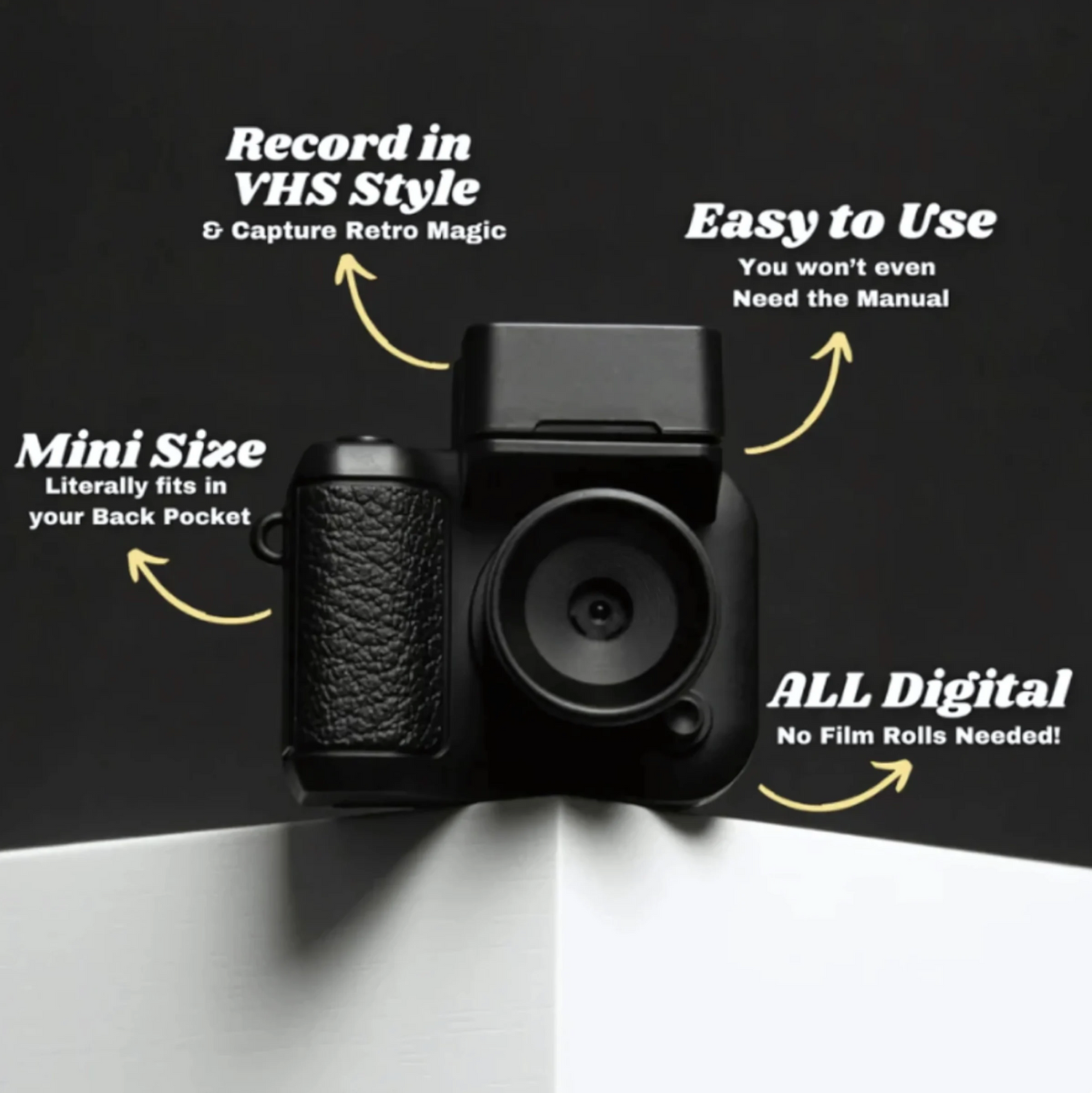 A sleek vintage-inspired camera with VHS-style recording, easy-to-use features, and digital precision—perfect for capturing life’s most memorable moments with ease.